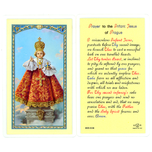 Laminated Holy Cards Infant Jesus of Prague Laminated Prayer Card Catholic prayer for